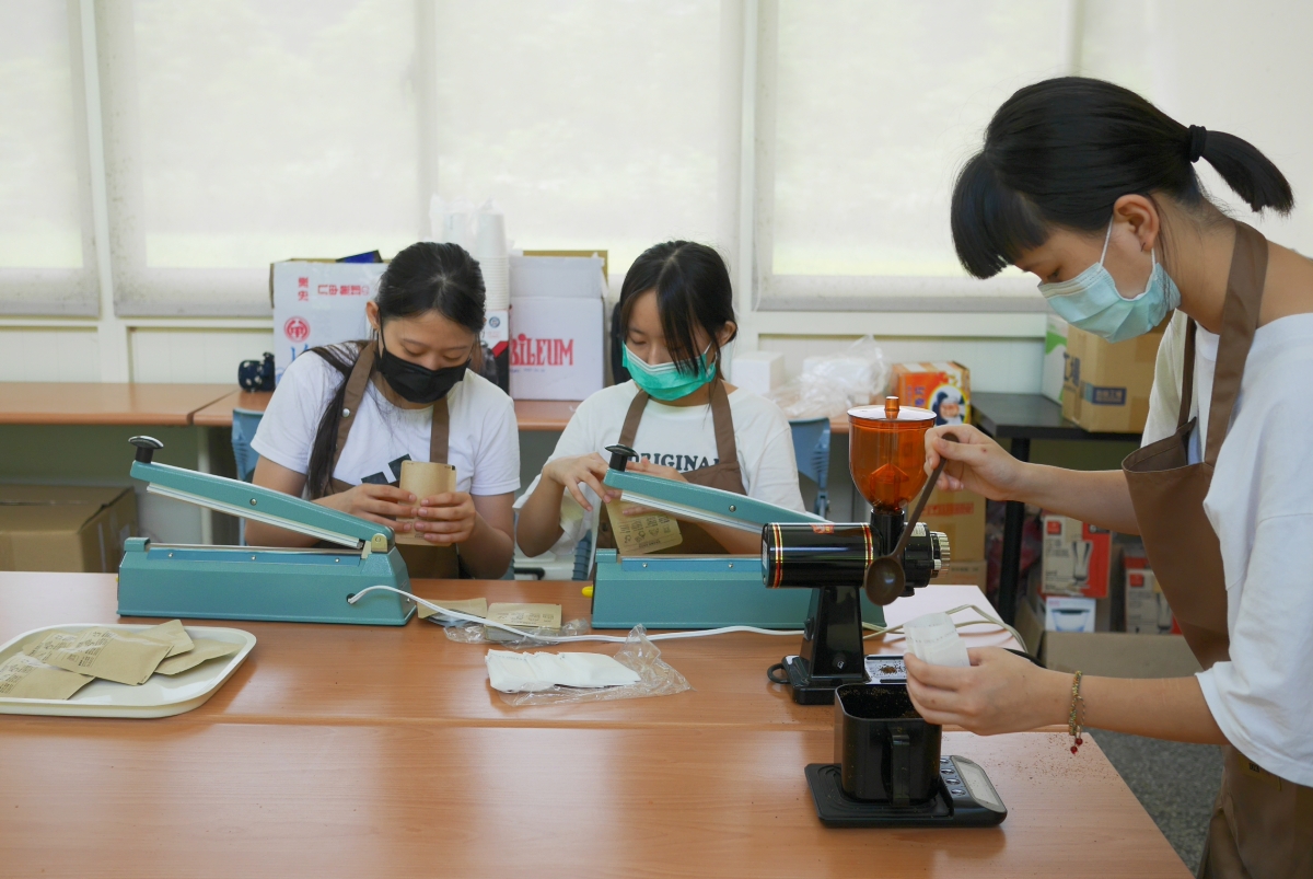 從學習烘豆、沖煮咖啡,到一包一包把濾掛咖啡包裝完成,每一個步驟都是孩子們親自參與。